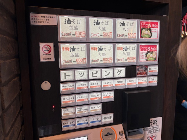 ・油そば880円(税込)→500円(税込)
