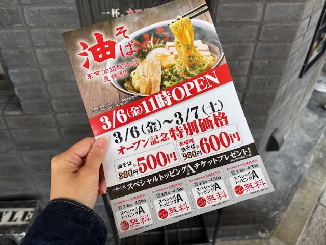 オープン記念|豊橋市【油そば 東京組総本店豊橋組】(写真あり)